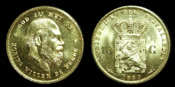 Netherlands, William III, 10 Gulden, 1875-1889
